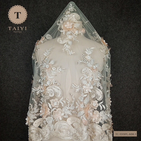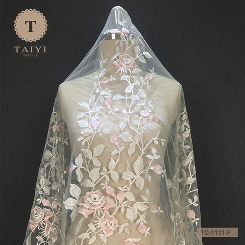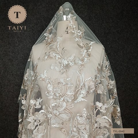 2022 tessuto da sposa in pizzo 3D fiore in rilievo ricamo in tessuto di pizzo