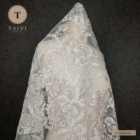 I migliori Prezzi di Modo Ricamato Tessuto Del Merletto Nuziale